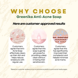 Cleanses And Treats In One Step: Greenika Anti-Acne Soap combines gentle exfoliation and deep-cleansing action to reduce pimples, clear clogged pores, and fade acne marks. It also helps lighten dark spots and smooth rough patches for an even-toned, refreshed look.