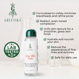 Best Facial Toner Ever: When pores are clogged with dirt and oil, they appear larger and more visible. The exfoliating effects of Greenika Glass Skin Toner help clear blemishes and improve acne-prone skin without drying it out, leaving it smooth, soft, and visibly radiant.